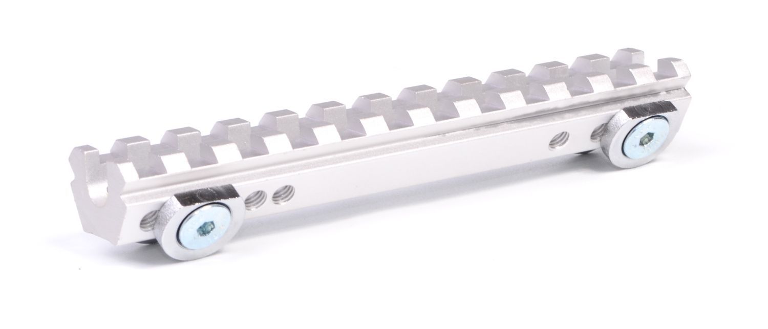 A scope base adapter rail in stainless silver finish for Ruger rifles listed below that have two Ruger style ring notch cuts. The adapter rail clamps onto the ring notch cuts and allows use of picatinny or weaver style scope rings and also will mount red dot sights with picatinny or weaver style mount. No drilling is needed. The rail has 12 ring slots which make it easier to set up eye relief and find more desired placement of scopes or red dot sights. It also has a see-thru opening that might allow use of iron sights depending on the type of scope or sight installed and models of your Ruger rifles.